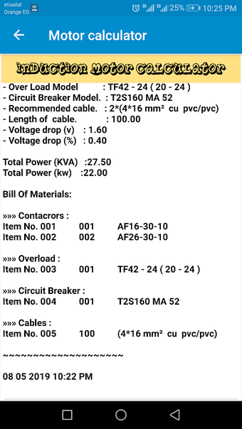 Z Motor Calculator użytkownicy mogą łatwo określić prawdziwą wartość i pojemność kontaktorów, zabezpieczeń przed przeciążeniem, wyłączników i rozmiarów kabli. Aplikacja generuje szczegółowy raport, który zawiera wszystkie obciążenia i ich odpowiednie obliczenia, wraz z listą zalecanych modeli i ilości dla każdego komponentu.